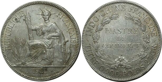O696 Scarce Indochina 1 Piastre 1921 H Heaton Argent Silver AU