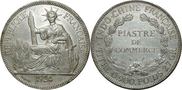 O697 Scarce Indochina 1 Piastre 1924 A Paris Argent Silver