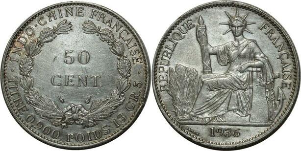 O698 Indochina 50 Cents 1936 Argent Silver AU