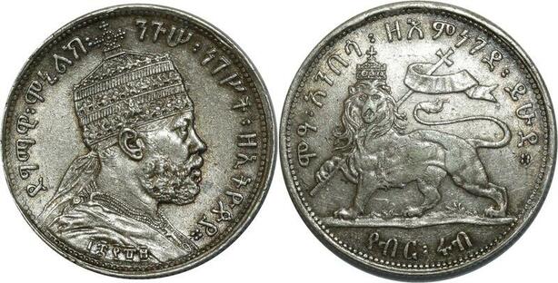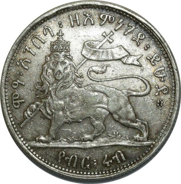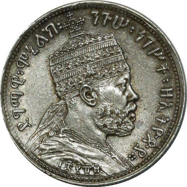 O733 Scarce Ethiopie 1/4 Birr Menelik II EE 1889 1897 A Paris Silver AU