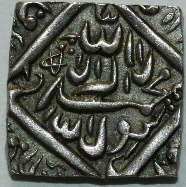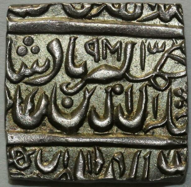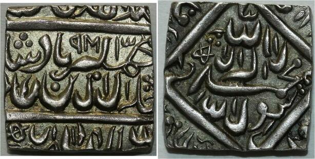 O756 Inedit India Moghol Mughal Square 1/2 Rupee Jalal al-Din Akbar AH 988