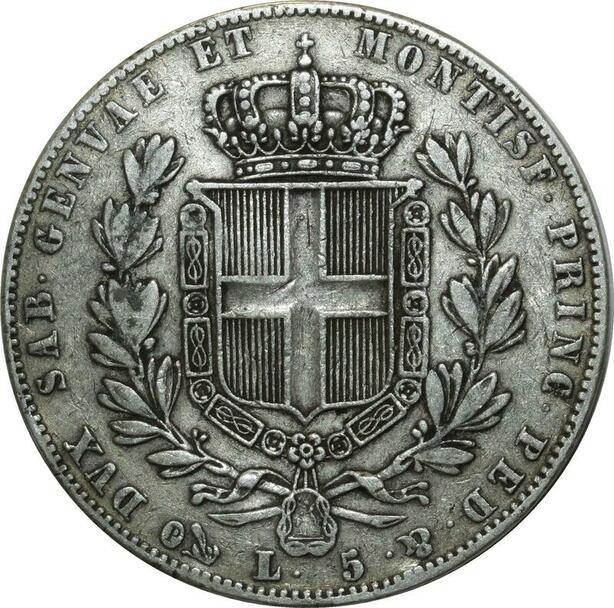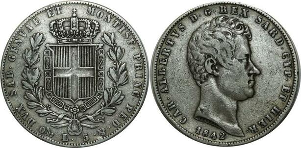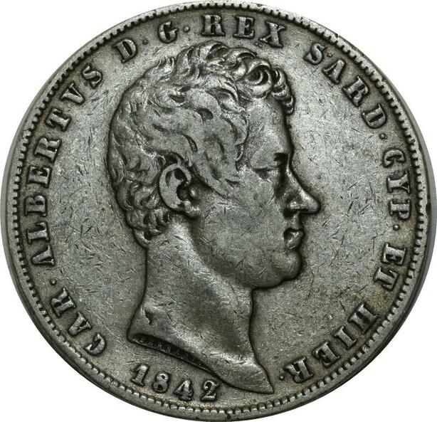 O787 Italy Sardina 5 Lire Charles Albert 1842 P Anchor Argent Silver