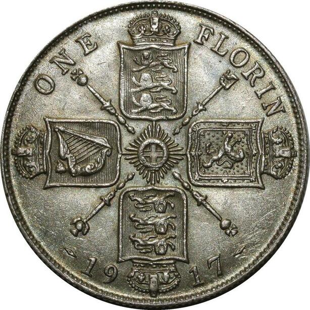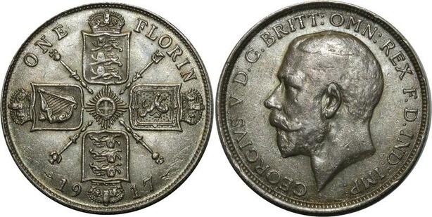 O794 Great Britain Florin George V 1917 Argent Silver AU +++