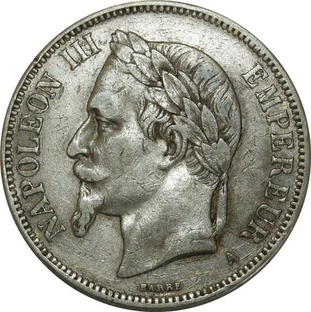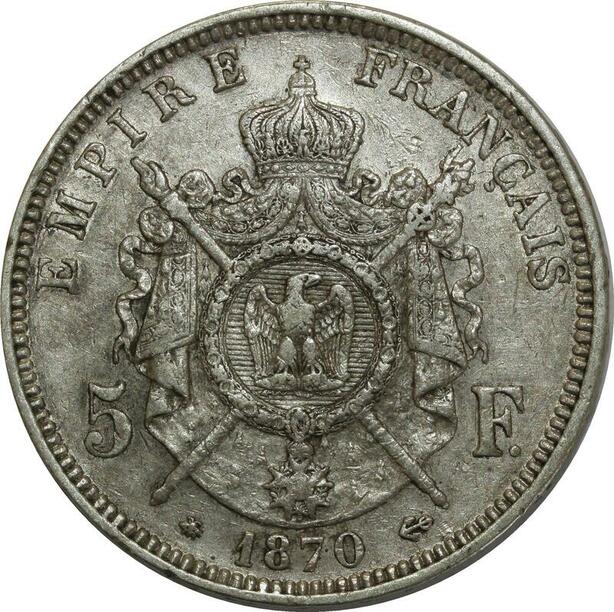 O883 France 5 Francs Napoléon III 1870 A Paris Argent Silver