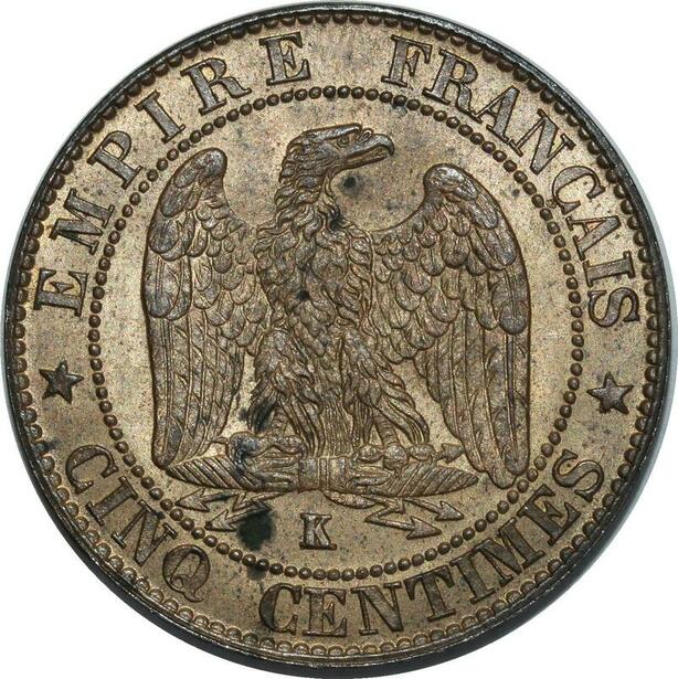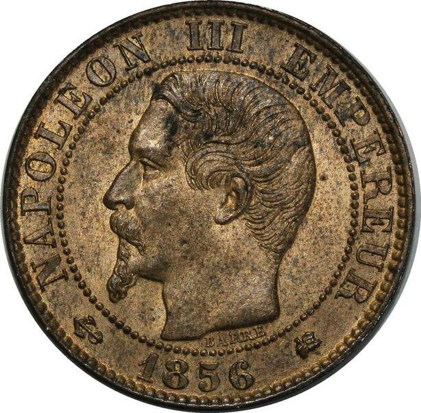 O891 France Rare 5 Centimes Napoléon III 1856 K Bordeaux PCGS Ms63 SPL