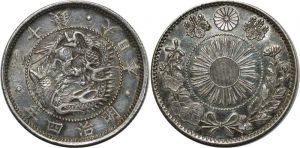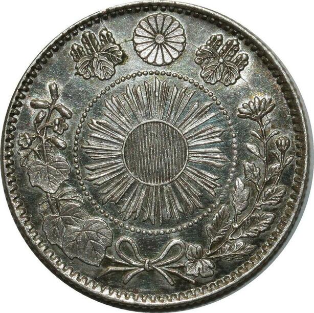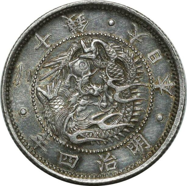 O901 Scarce Japon 20 Sen Meiji 1871 Argent Silver AU !!