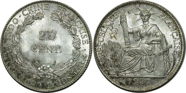 O914 Indochina Indo China 20 Cents 1937 Argent Silver FDC !! MS !!