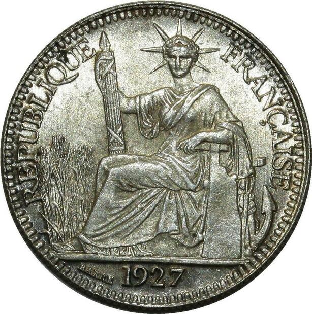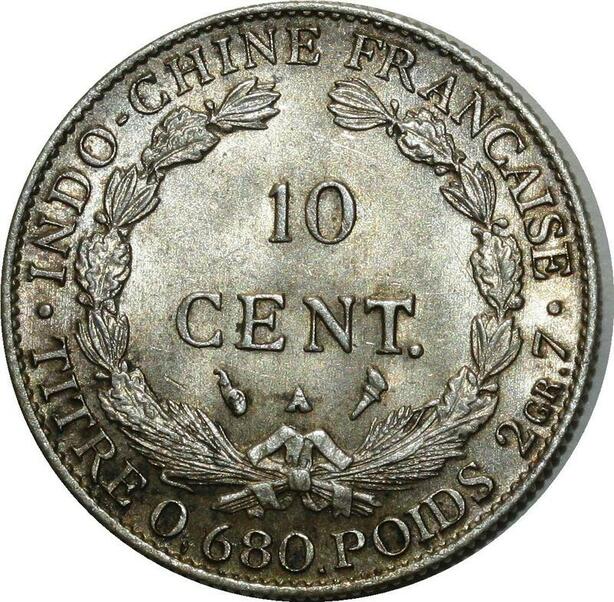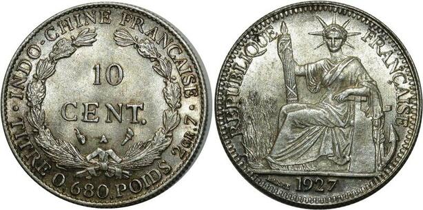 O917 Indochina 10 Centimes 1927 A Paris Argent Silver MS !!!