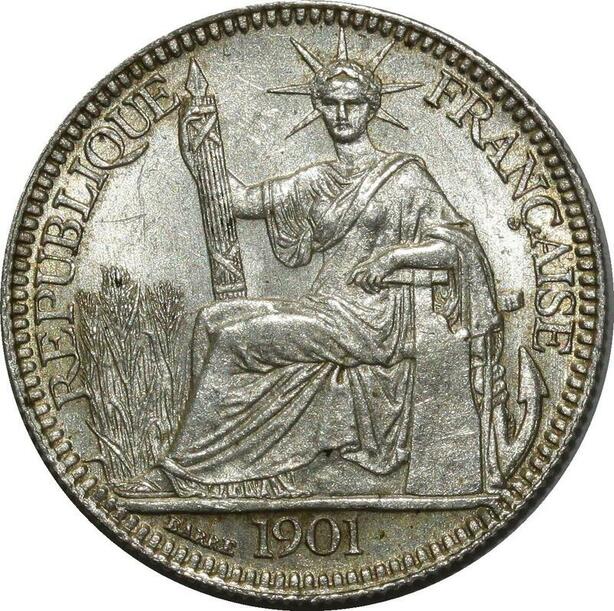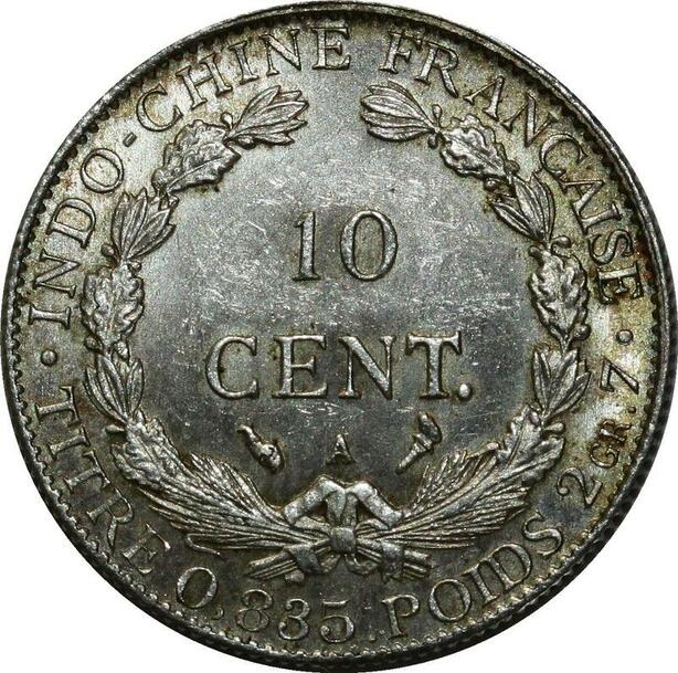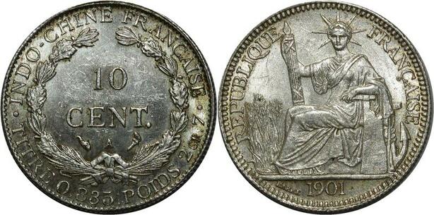 O920 Scarce Indo China 10 Centimes 1901 A Paris Argent Silver UNC MS !!!