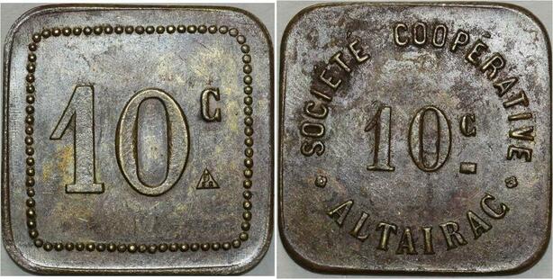 O933 Algeria Jeton 10 Centimes Société Coopérative Altairac Alger