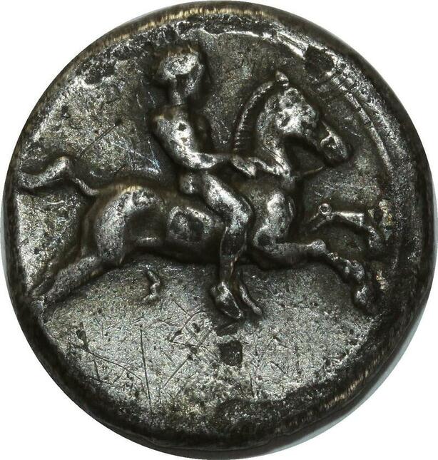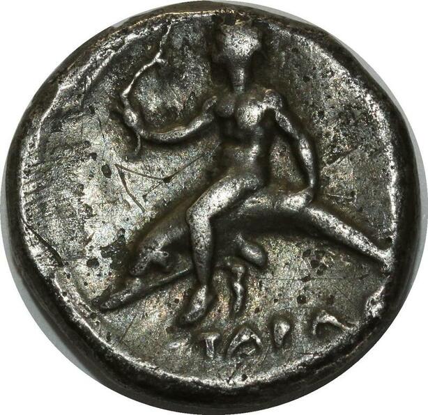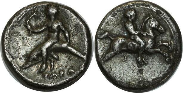 O999 Scarce Calabre Tarente Nomos Statère ou Didrachme Sauphin TAPA 272-235
