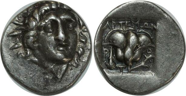 O1014 Rare Rhodos Hemidrachme Plinthophore Circa 125 88 ANTAIOY P-O Silver