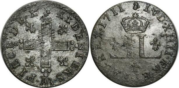O1020 Rare !!! France 30 XXX Deniers Louis XIV 1711 AA Metz AU50 !!