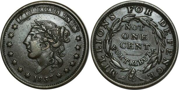 O1029 USA One Cent Liberty HT-48 Millions for defence 1837