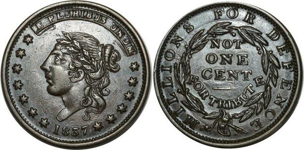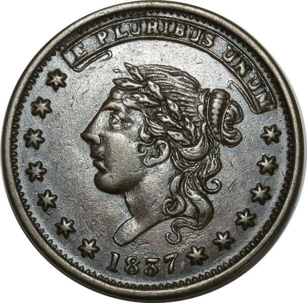 O1038 Scarce USA Not Cent Americana Hard Times defence Token 1837 Liberty AU