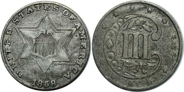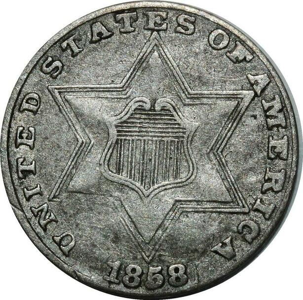 O1051 Rare USA United States 3 Three cents Star 1858 Silver -> Make offer