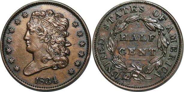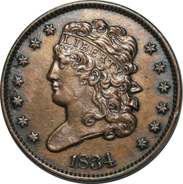 O1054 USA Classic Head Half Cent 1834 AU ++