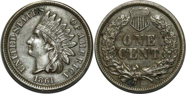O1056 USA One Cent Indian 1861 AU