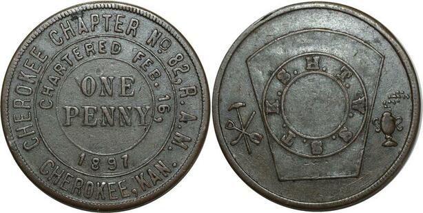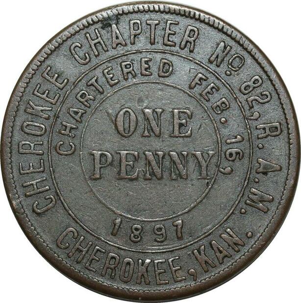 O1064 USA Masonic Token Franc Maçons One Penny 1897 Cherokee Chapter N°82