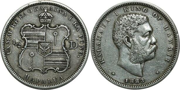 O1071 Scarce Hawai 50 Cents 1/2 Dollar Charles Barber 1883 XF silver