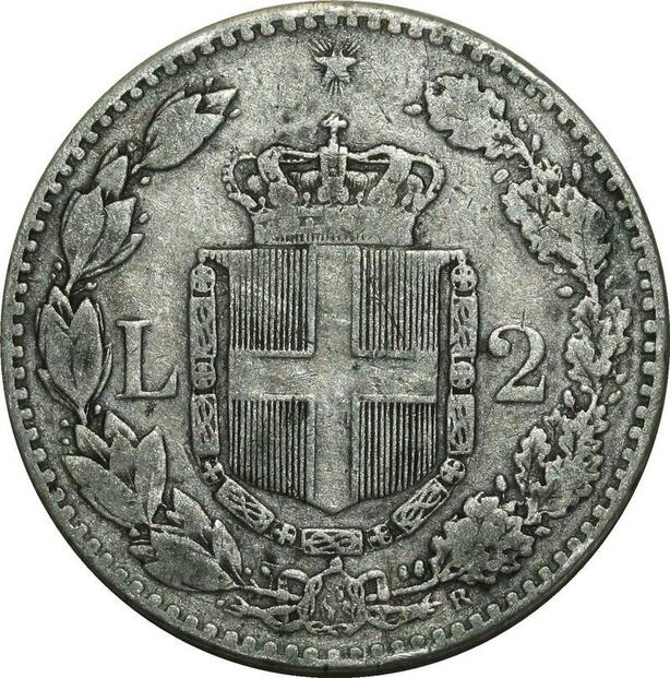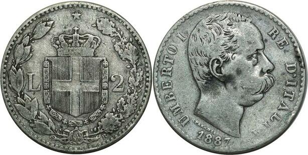 O1093 Italy 2 Lire Umberto 1887 Rroma Regno D'italia Silver
