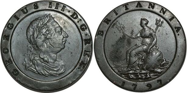 O1108 Great Britain 2 Pence George III 1797 XF !