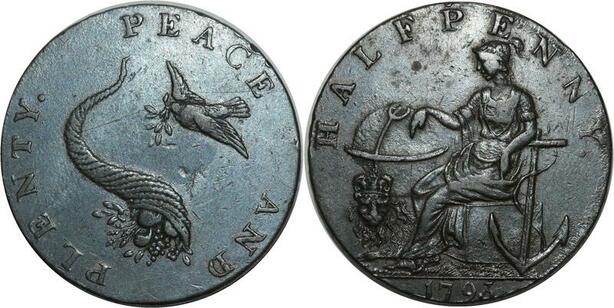 O1112 Great Britain Half Penny Hampshire 1793 Peace and Pleanty Peter Kemson