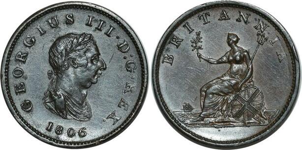 O1114 Great Britain Half Penny Georges III 1806 XF to AU - >Make offer