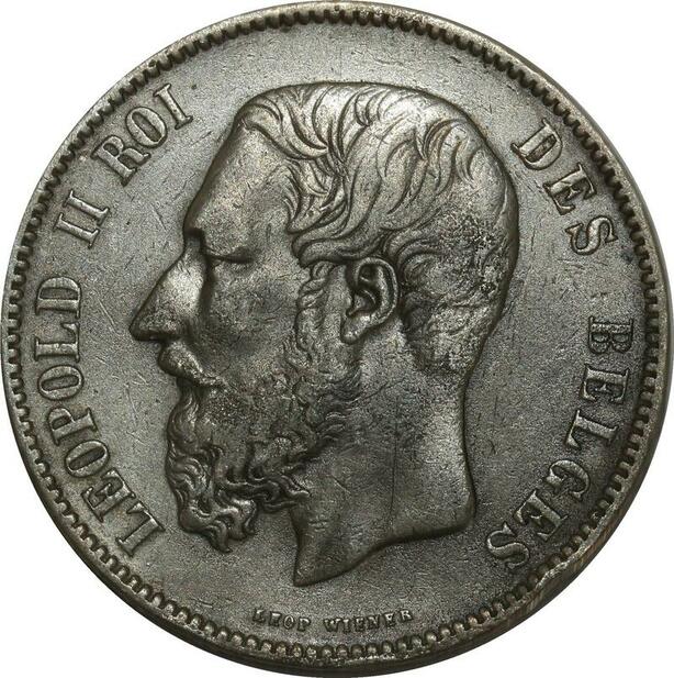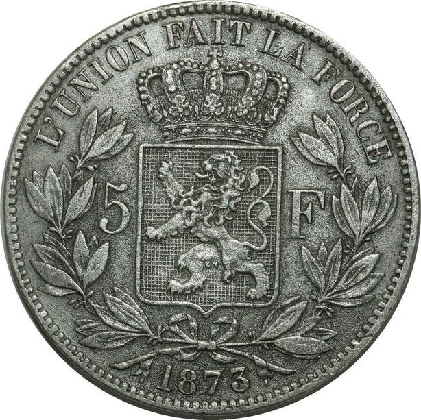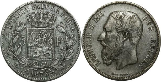 O1125 Belgique 5 Francs Léopold II 1873 Argent