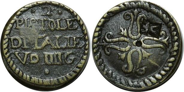 O1153 Rare Italy Poids Monetaire 2 Pistoles countermarked Tower