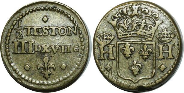 O1167 France Rare Poids Monetaire 1/2 Demi Teston n.d. Anvers Henri III Henri IV