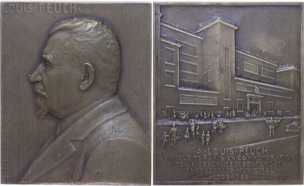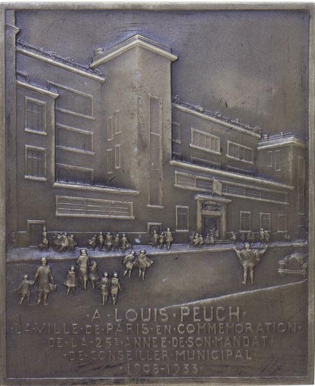 O1289 Rare Plaque atelier Pillet 1933 Louis Peuch 25 ans Paris Conseiller