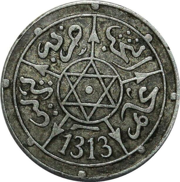 O1295 Morocco 1/2 Dirham Abdul Aziz I an 1313 1895 Paris Silver