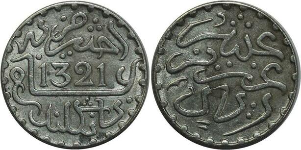 O1300 Morocco dirham Abdelaziz 1321 AH 1903 Londres Silver AU - M offer