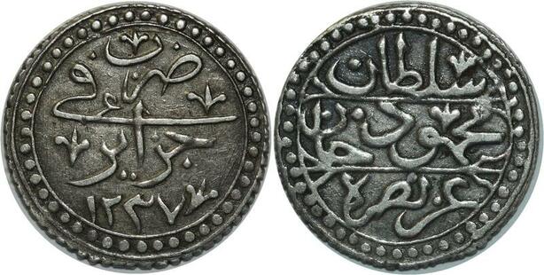 O1316 Rare Algeria 1808-1839 1/4 Boudjou Mahmud II 1237 1822 Silver