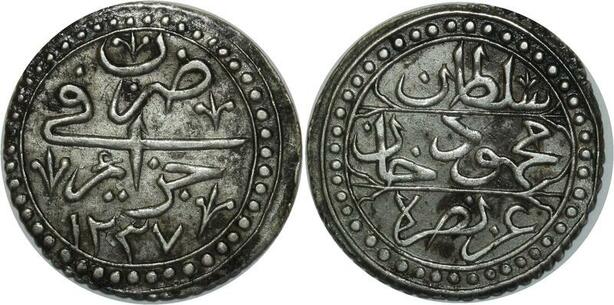 O1318 Rare Algeria 1/4 Budju Mahmud II 1237 AH 1821 Silver