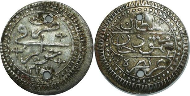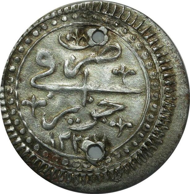 O1323 Algeria 1/4 Boudjou Mahmoud II 1237 1822 ١٢٣٧ Silver AU