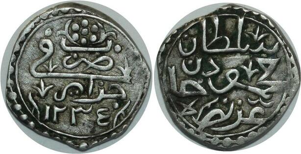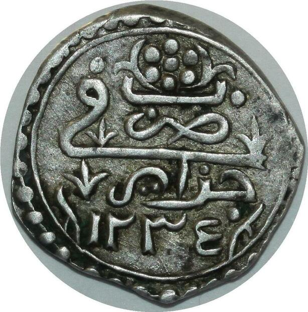 O1327 Scarce Algeria 1/8 Boudjou Budju Mahmud II 1834 1818 Silver XF