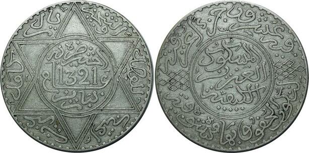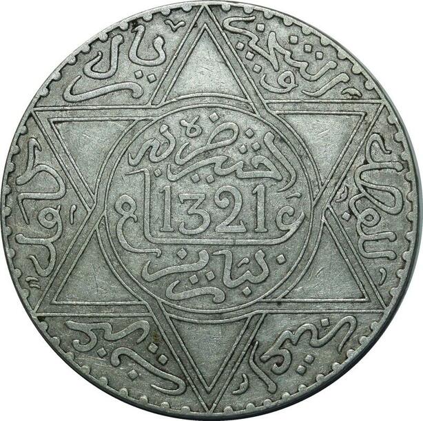 O1375 Rare Morocco 10 dirhams Abdelaziz 1321 AH 1903 Paris