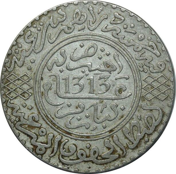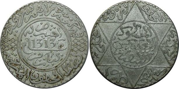 O1380 Morocco Abd al-Aziz 5 dirhams 1313 AH 1895 Paris SUP