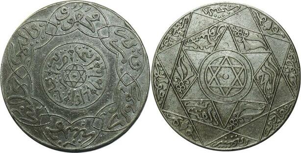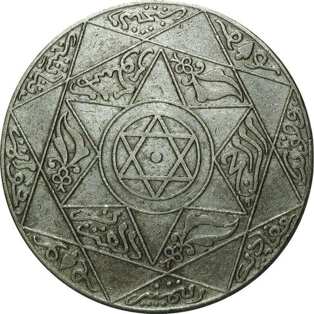 O1386 Rare Morocco Abdül Aziz Ier 5 dirhams 1317 Paris Argent Superbe