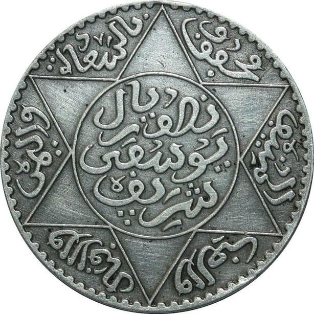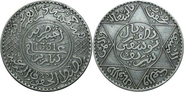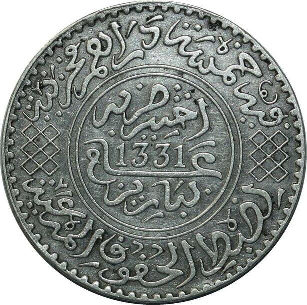 O1394 Morocco Moulay Yussef I 5 dirhams 1331 de l'Hégire Paris silver