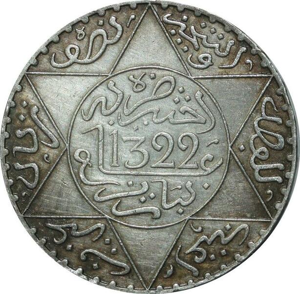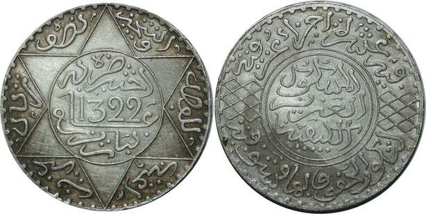 O1395 Rare !! Morocco Abd al-Aziz 5 dirhams 1322 AH 1904 Paris SUP SPL !!