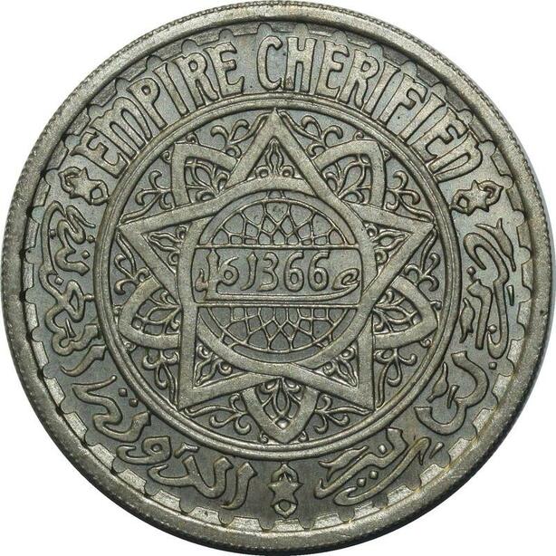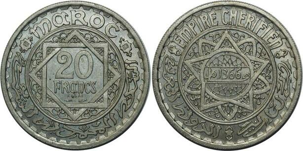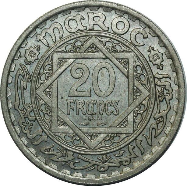 O1396 Rare Morocco 20 Francs Mohammed V Essai AH 1366 1947 PCGS SP65 BU