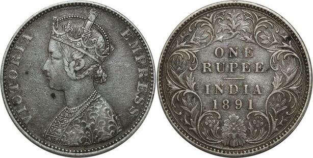 O1399 India One Rupee Victoria 1891 Silver