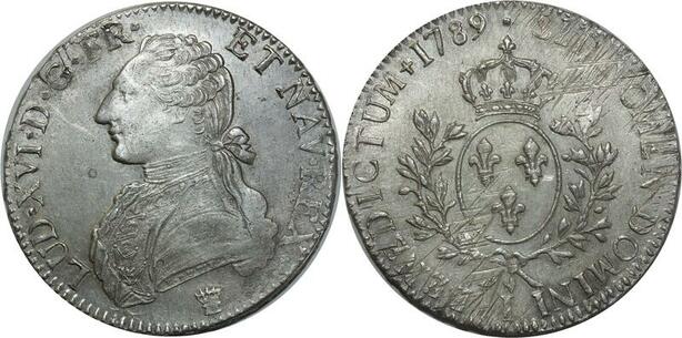 O1503 France Rare Ecu Louis XVI 1789 I Limoges Argent Silver Superbe