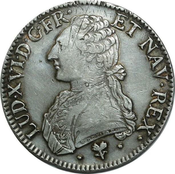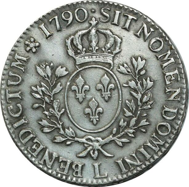 O1521 France Rare Ecu Louis XVI 1790 L Bayonne Argent Silver TTB++