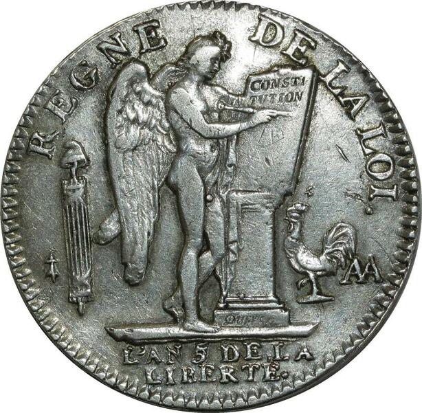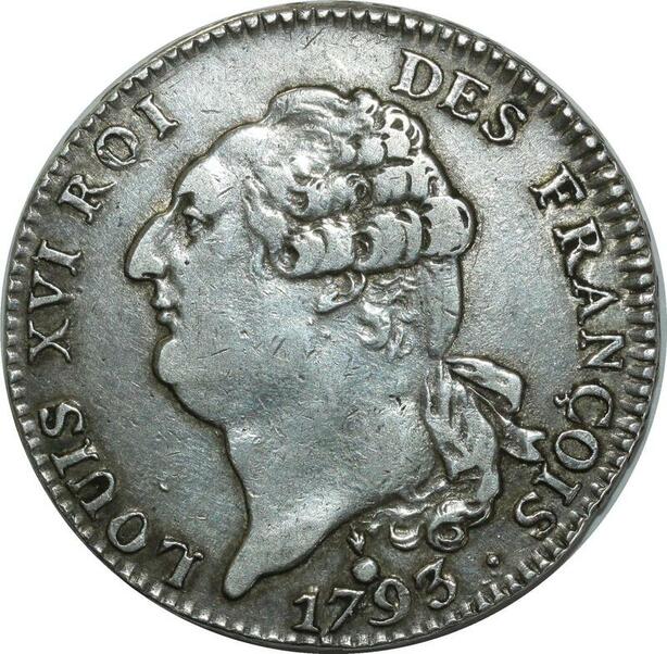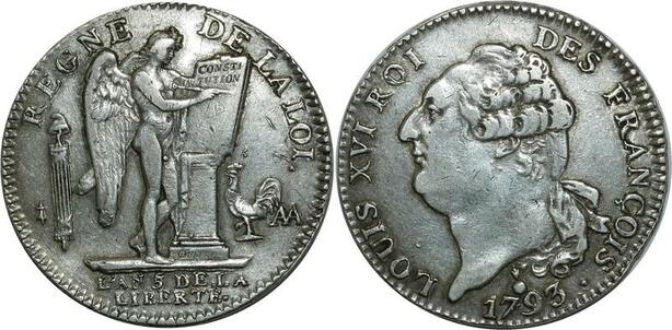 O1539 France Rare Ecu Constitution Louis XVI 1793 AA Metz An II Argent Silver SUP