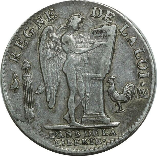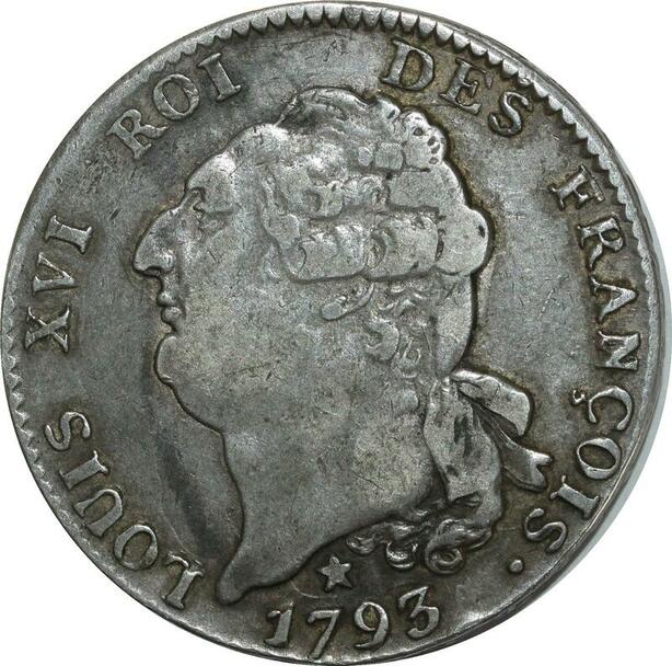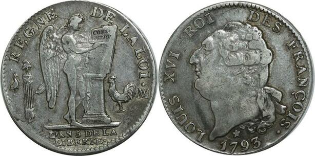 O1542 France Tres Rare Ecu Constitution Louis XVI 1793 MA Marseille Argent Silver