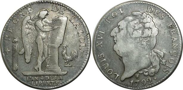 O1573 France Rare Ecu Constitution Louis XVI 1792 I Limoges Argent > M offer